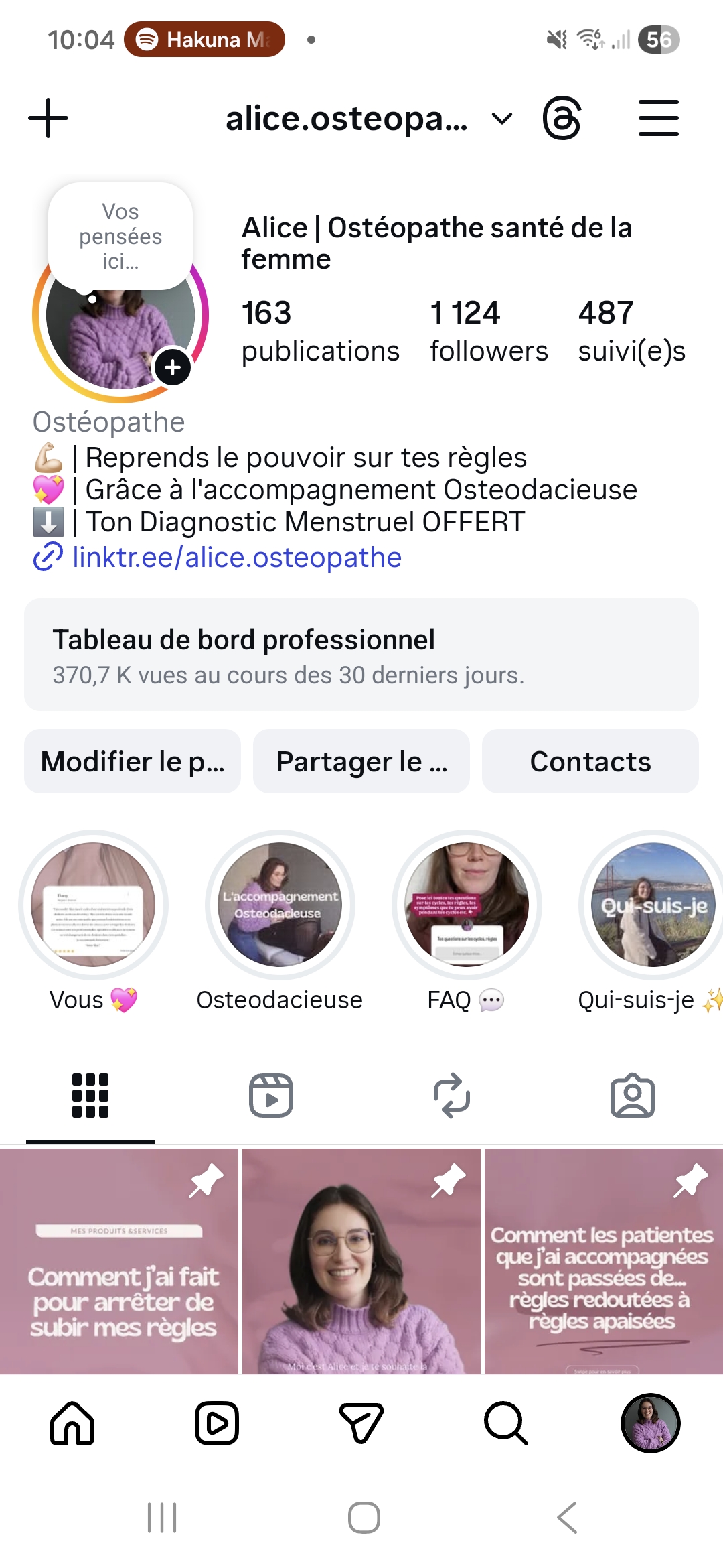 car c'est en novembre 2023 que j'ai créé mon compte insta @osteodacieuse (aujourd'hui @alice.osteopathe) !! 🔥